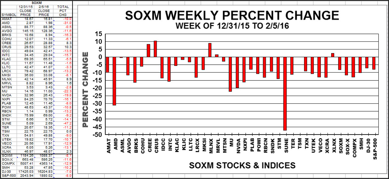 The SOX, NASDAQ and SMH are all down over -10% for the first 5 weeks of the year.