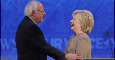 | Hillary: "You know I stabbed you in the back and robbed you blind on delegates, right? Sanders: "Of course I know. You are cheating better than I am. But just wait." |