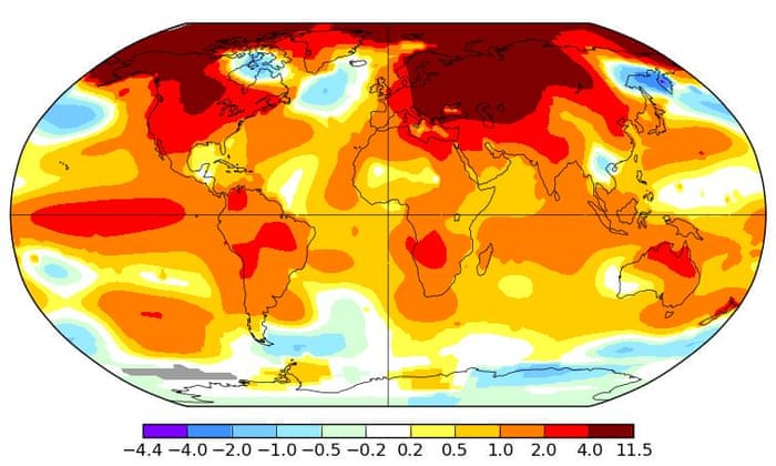 February 2016 global surface temperature anomalies. Photograph: NASA GISS Dana Nuccitelli