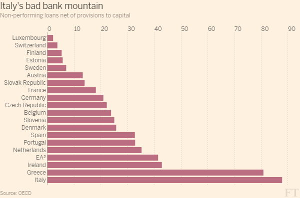 This kind of thinking has gone so far now that even Greek debt is considered adequate collateral for ECB funding. ( LOL).... ( Ha Ha Ha) This allows Greek lenders to pledge junk-rated sovereign debt against ECB funding, according to Jana Randow and Nikos Chrysoloras of Bloomberg. The ECB is also apparently ready to allow senior tranches of hypothetical securitized Italian NPLs to be used as collateral for ECB funding, should that be needed. This is a fairly shocking replay of the kinds of things done by Bernanke's Federal Reserve during the height of the 2008 crisis. It is fair to say that we are again in a European banking crisis, and what happens next is critical to our economic health.