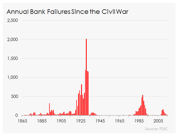 Chart 4: Asymmetric Distribution of Bank Failures Is Unrelated to Crisis Severity Since 1965