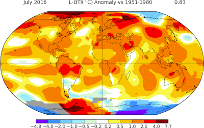 According to GISS NASA, the average global surface temperature anomaly for July was 0.84 °C, which is 0.1 °C higher than the previous hottest July in 2011.