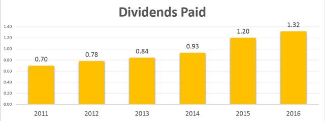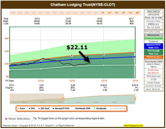 CLDT's monthly dividend of $0.11/share or $1.32 on an annualized basis, which equates to a 6.0% current dividend. Since the company went public in 2011, it has paid and increased dividends annually.