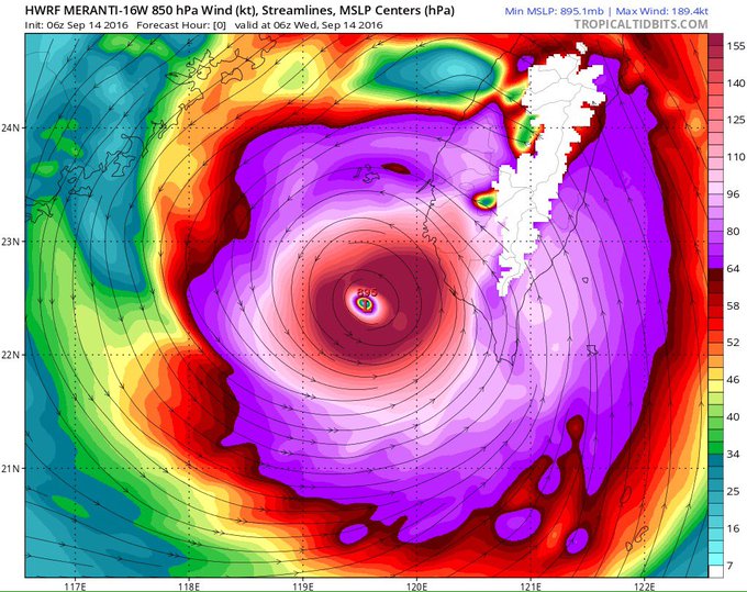 #Meranti is one of the strongest storms on earth with more than 200mph winds (190kt) as a Cat 6 hurricane scale.