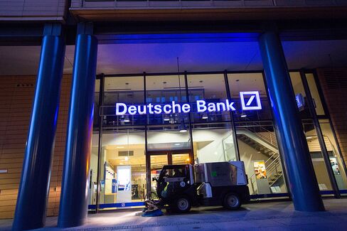 A road cleaning machine drives past the exterior of a Deutsche Bank AG bank branch in Berlin, Germany, on Wednesday, Sept. 28, 2016.