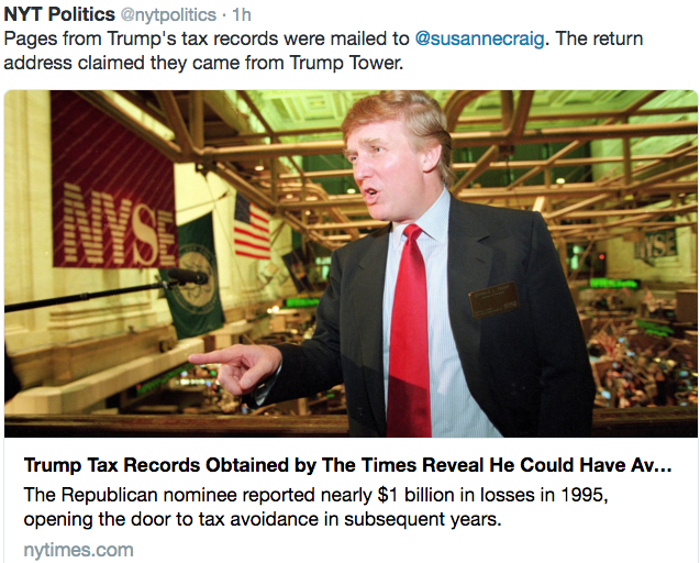 Trump Tax Records Obtained by The Times Reveal He Could Have Avoided Paying Taxes for Nearly Two...The Republican nominee reported nearly $1 billion in losses in 1995, opening the door to tax avoidance in subsequent years.