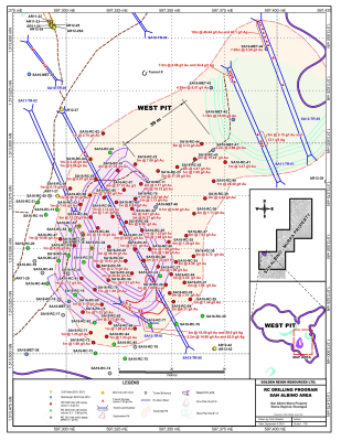 The grade control, Reverse Circulation (RC) drilling at San Albino's West Pit consisted of 87 vertical drill holes totaling 1,581 metres (see attached map). This closely spaced RC drill program: