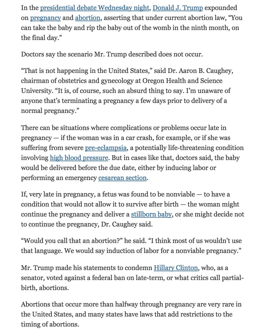 "Trump Said Women Get Abortions Days Before Birth. Doctors Say They Don’t."
