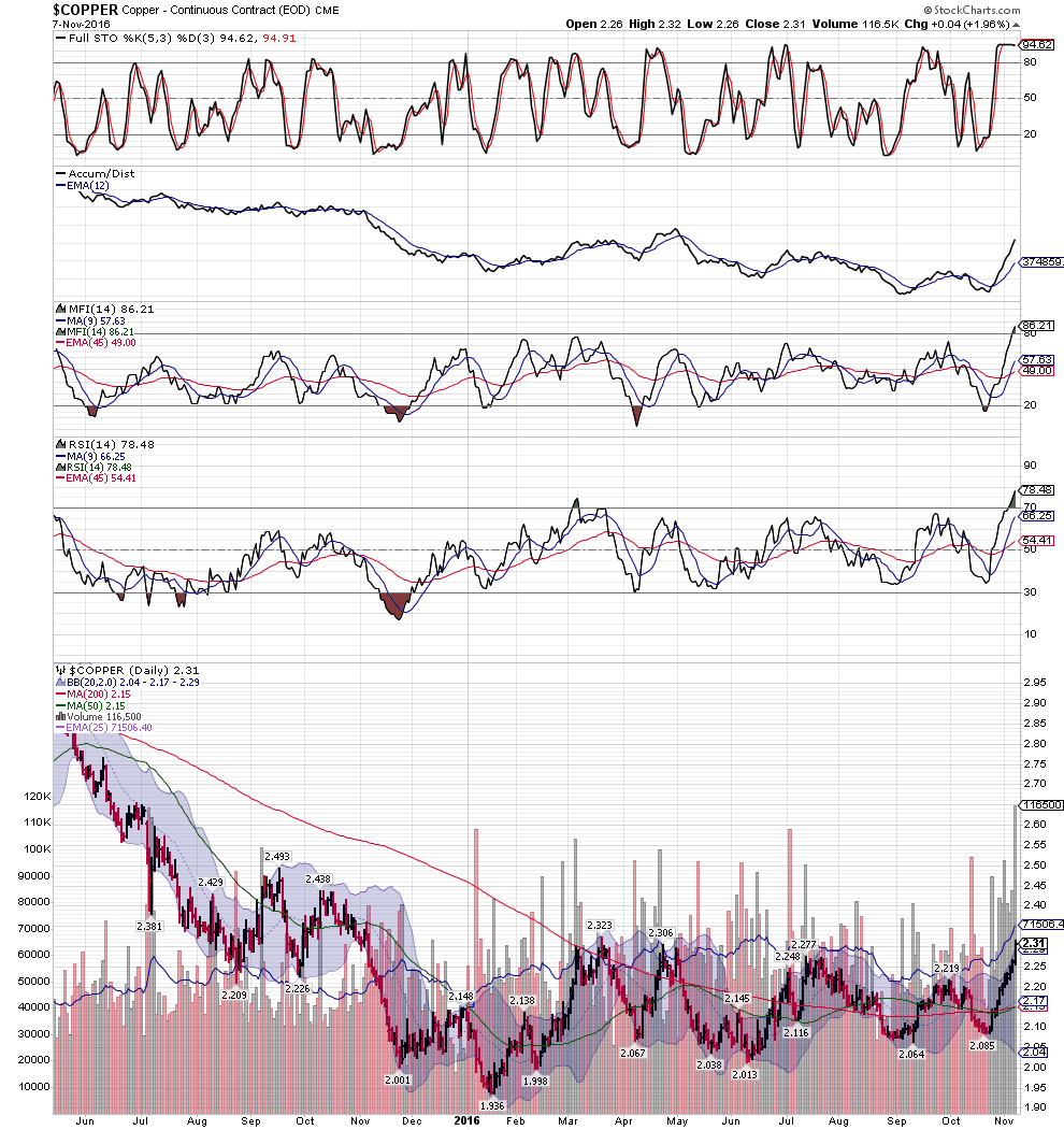 flight to safety getting hammered..... Copper... used in an expanding economy.... just turned into a moonshot on 11/7/16