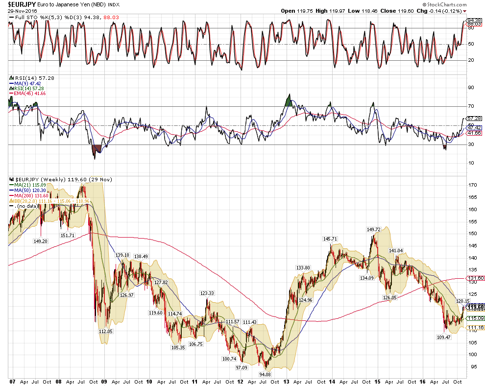 and look at the risk on situation of the of the 10 year weekly EUR/JPY... It has not been this far above it's bollinger band it 10 year..... The Yen carry trade has accumulated over 25 years and it really is impossible to understand how the really massive global Re Insurance companies adjust their global asset allocation models unless we understand that they are doing it over long time frames like tectonic plate shifts... They are crunching interest rate differentials and looking at Global Tranfer pricing movements of huge amounts of money that is just not know to even most really saavy professional hedge fund managers....