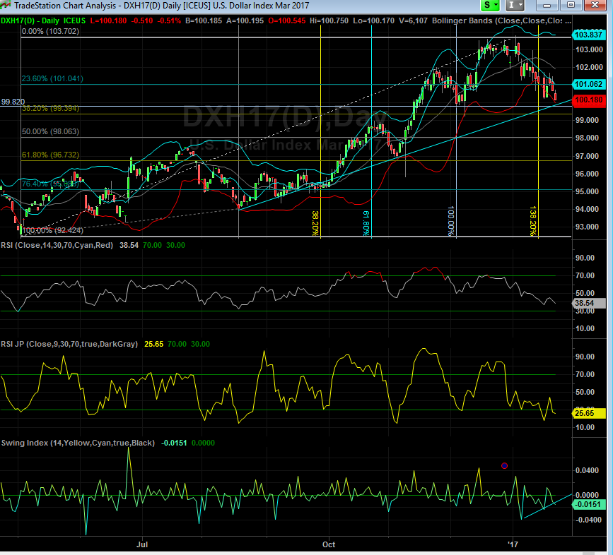 and lets look at an different daily USD index chart ... USD is above it's trendline, above it's horizontal support level 99.39 is the .382 support level.. the resolution on this chart is not good.... I'll have to ponder why that is.