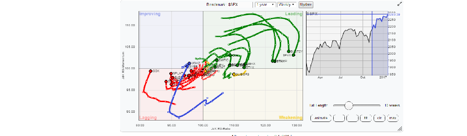 they have interesting tools like the Relative Rotation Graph where you can adjust the time frame from a day to 30 weeks.