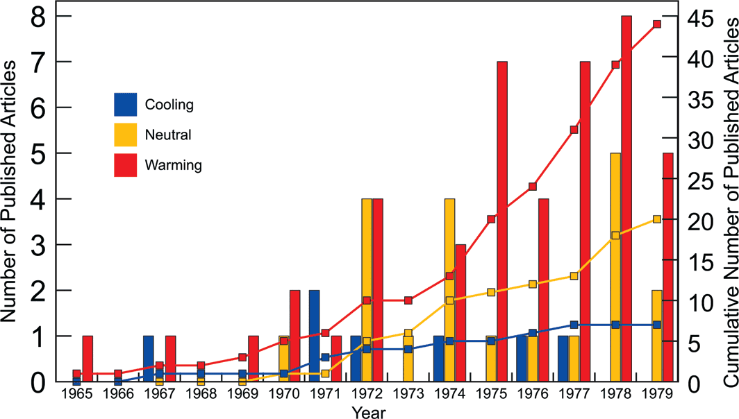 Here's what "climatologists of the time" were saying...7 cooling, 20 neutral, and 44 warming papers. Would you like the entire bibliography? journals.ametsoc.org