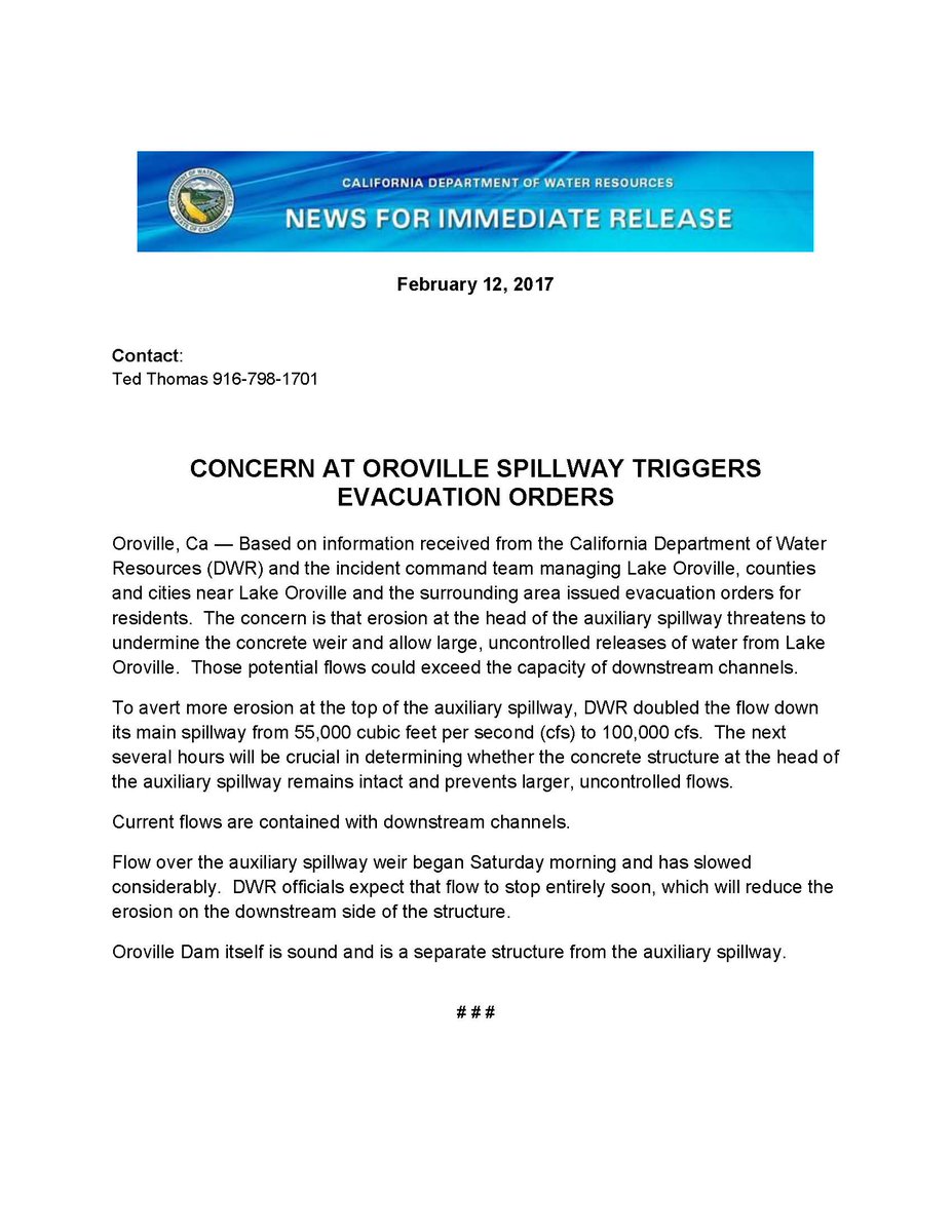 Local new wasn't real helpful; mostly a summation.They're releasing 100K cubic ft/sec, which is bringing up the river. Average flow for the Colo. is 22.5K CFS, so there's a lot of water in the Feather River, which dumps into the Sacramento. Officials are starting to think about low places in Sacramento. Shasta Reservoir is about 95% full, so they'll have to start releasing more into the Sacramento from it soon, too. There's a chance of rain Wed, with rain Thurs-Sun.