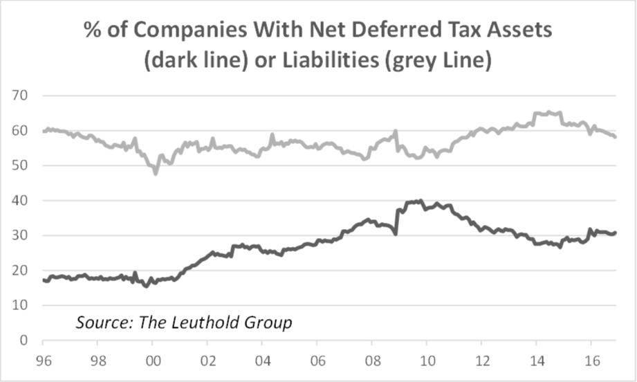 During a 2004 congressional debate about a potential corporate tax cut, there was a contingent of companies with substantial deferred tax assets which lobbied against such a cut for fear of the one-time hit to earnings. As a result of these companies’ efforts, the American Jobs Creation Act of 2004 did not cut the statutory tax rate, but instead lowered the effective rate for companies through other means. This illustrates that the negative impact of having a large deferred tax asset write-down is true concern for management. Could we see another attempt to circumvent a corporate tax cut under a Trump plan?
