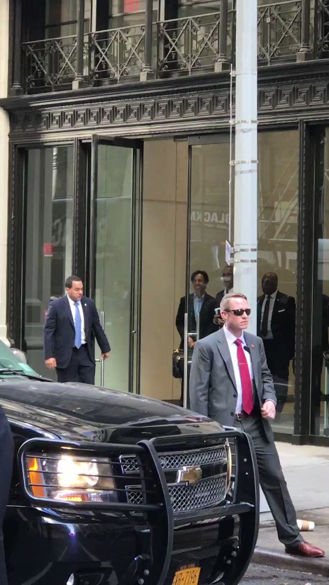 Obama just left a meeting off 5th Ave. Hundred outside cheering.