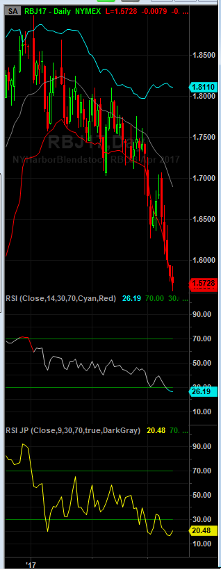 The Gasoline contracts for May and June have been hit at least as hard in the large decline.