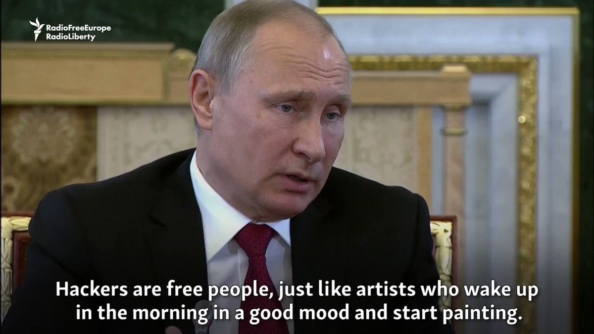 Putin: "Hackers are free people, just like artists who wake up in the morning in a good mood and start painting." t.co