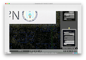 We need to highlight the yellow dots. Open the screenshot in an image editor, such as the "Paintbrush" program built into macOS. Now use the option to "Invert Colors" in the image, to get something like this. You should see a roughly rectangular pattern checkerboard in the whitespace.  It's upside down, so we need to rotate it 180 degrees, or flip-horizontal and flip-vertical:  Now we go to the EFF page and manually click on the pattern so that their tool can decode the meaning:  This produces the following result:  The document leaked by the Intercept was from a printer with model number 54, serial number 29535218. The document was printed on May 9, 2017 at 6:20. The NSA almost certainly has a record of who used the printer at that time.