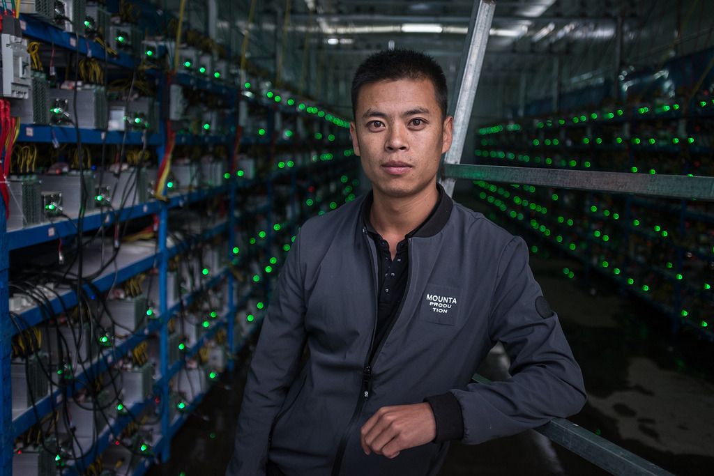 A 29-year-old Tibetan named Kun poses in between aisles of mining machines, September 26, 2016. Kun is the mine’s manager as well as one of its investors. He learned about Bitcoin through a friend and started investing in 2015.