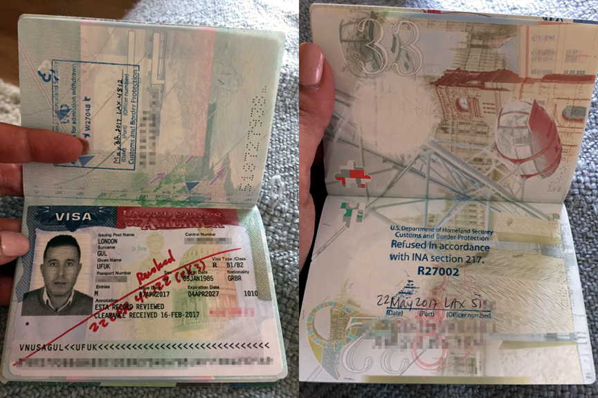 However, the only souvenirs they’ve brought back are stamps in their passports stating that they were ‘refused in accordance with INA section 217’, and a £7,000 hole in their pockets. Couple detained on honeymoon 'because the groom is Muslim'