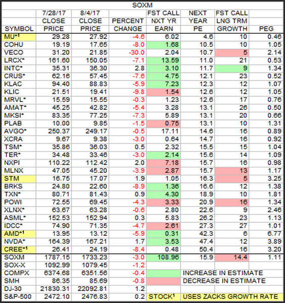 This is the same SOXM data as the last post, but this time it is sorted by PE.