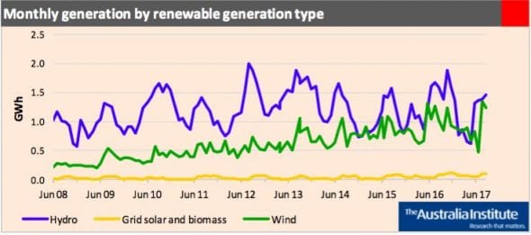 The record, noted by Hugh Saddler in The Australia Institute-sponsored monthly update of emissions and energy supply, meant that wind energy counted for more than 17 per cent of total grid demand.
