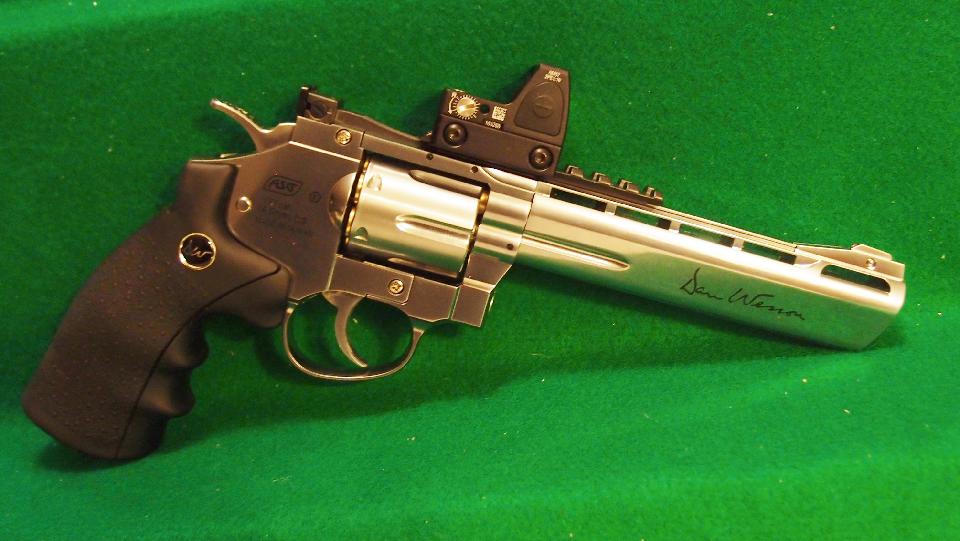 I have recently been shooting Air HandGun, A Dan Wesson 6" Revolver, CO2, Pellet at 10yds and closer...