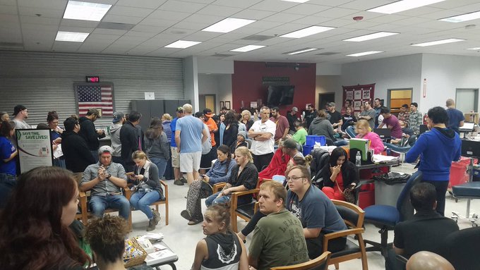 The line to donate blood is out the door at United Blood Service. People have been here all night waiting for it to open #GMLV
