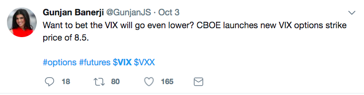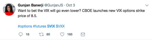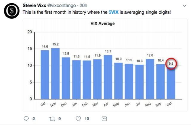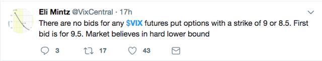 We argue that it's just a matter of time. The fact is that the volatility market here is eschewing the notion that the VIX can fall much further.