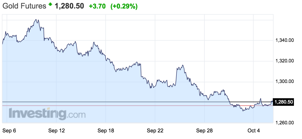Gold futures are also moving upward, though their trend on the month is still overwhelmingly downward.