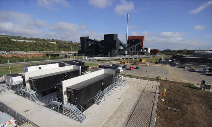 The storage facility in Blackburn Meadows, Sheffield, with a combined heat and power plant in the background. Photograph: E.ON Adam Vaughan