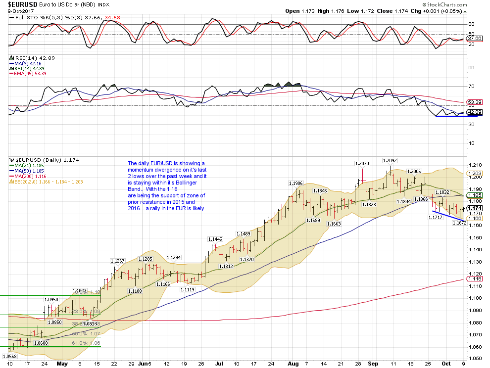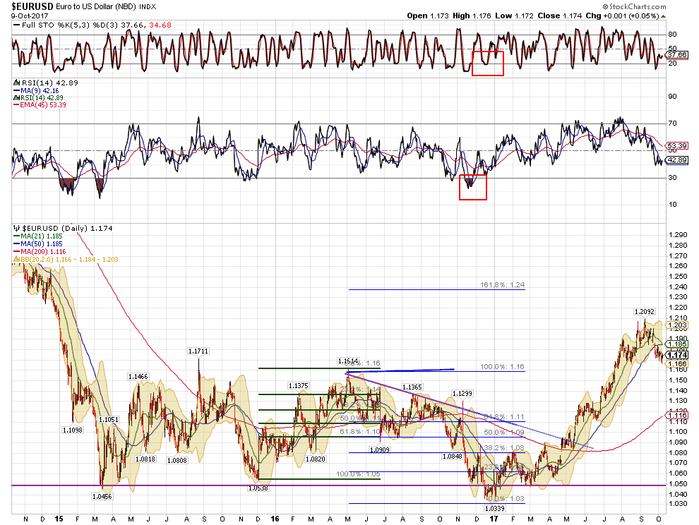 The 3 year chart of the EUR/USD shows that the resistance area of 1.16 in 2015 and 2016 has now turned into support.