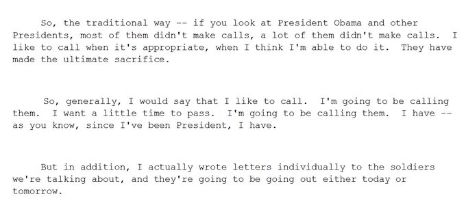 BREAKING: Trump says previous presidents didn’t bother calling the families of fallen U.S. soldiers