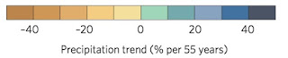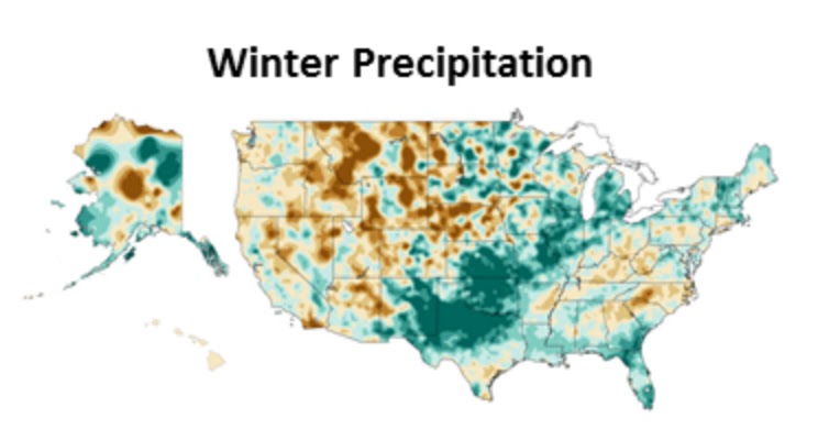 There is NO reason to expect global warming has or will provide southern California with MORE winter rain. Here is the winter precipitation trend from the latest U.S. national assessment (last 30 years minus the first half of the century). Very small changes, with varying sign over coastal CA.