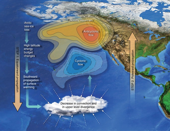 A recent, highly publicized paper ( Cvijanonic et al) has suggested that reductions of arctic sea ice results in greater ridging along the West Coast (see figure from their paper). But there has been a large loss of sea ice the last few decades and no trend in the ridging in the exact position they talked about. So their hypothesis does not seem well founded.