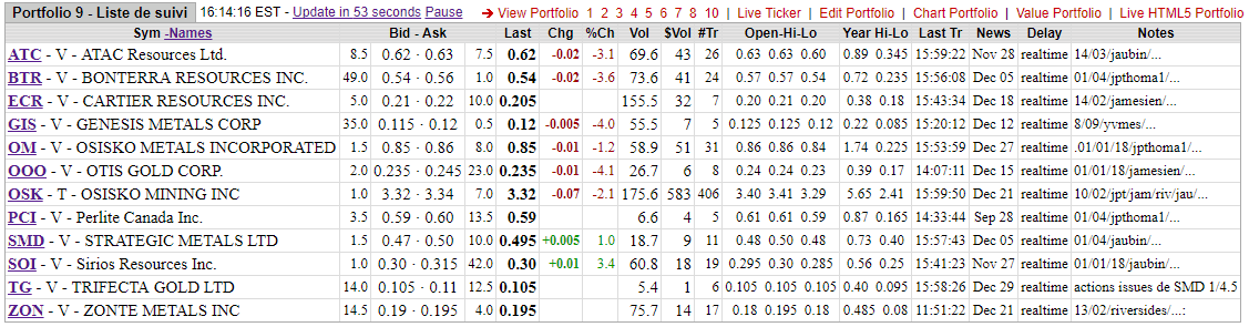 Mise à jour de la liste de suivi. Rendement de 10.80%