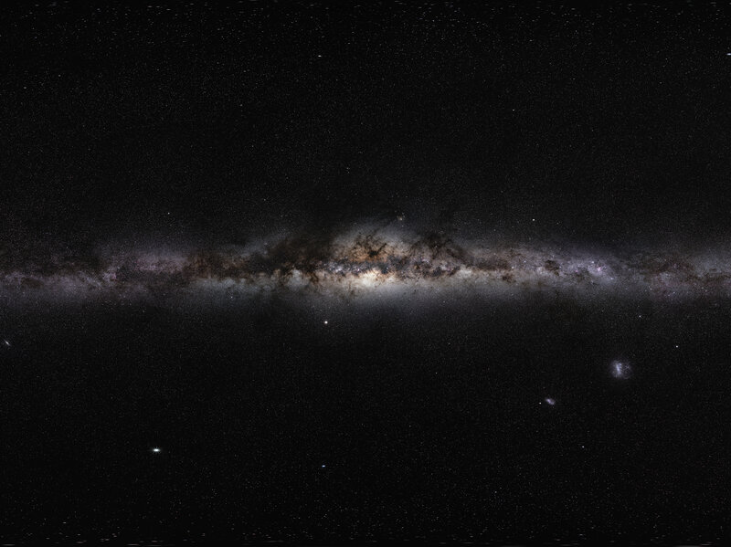 The plane of the Milky Way Galaxy, which we see edge-on from our perspective on Earth. The projection used in ESO's GigaGalaxy Zoom project gives the impression of looking at the Milky Way from the outside.