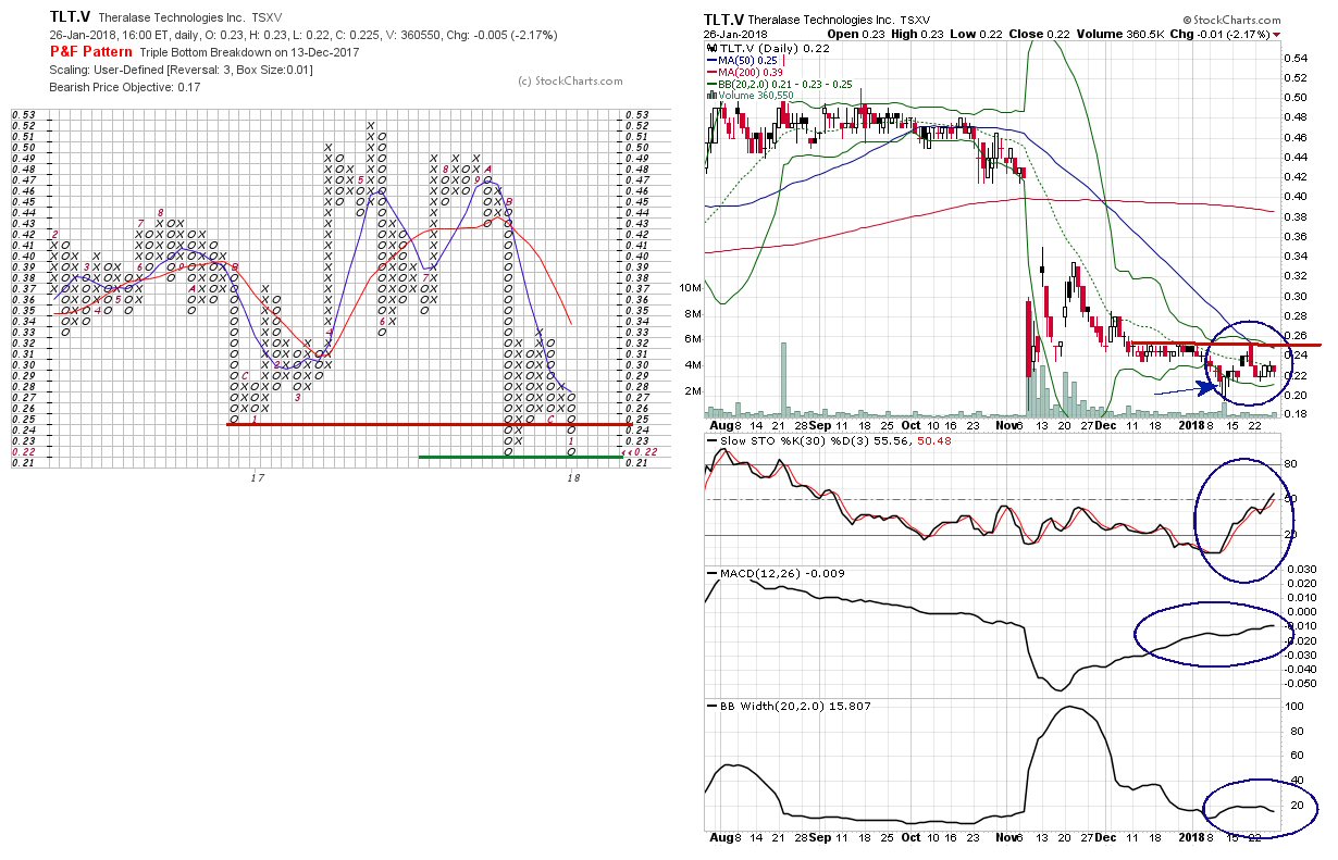 As can be seen there is little changed in the P&F chart. we have a support at $0.22 and a resistance at $0.25.