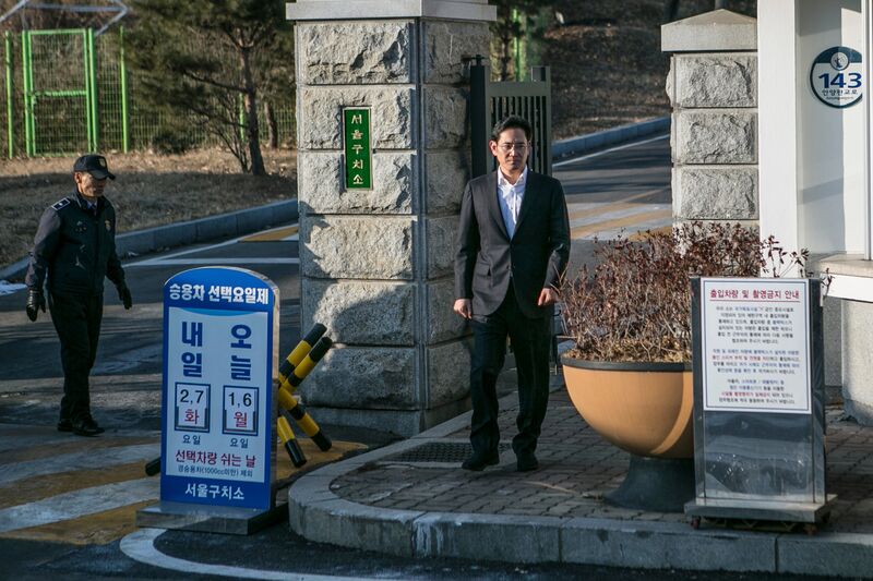 Jay Y. Lee leaves the Seoul Detention Center on Feb. 5. Photographer: Jean Chung/Bloomberg
