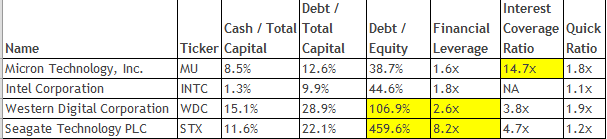 1) Western Digital’s Valuation Compared To SeagateAt a 7.88x forward P/E and 15.3x P/E, Western Digital is discounted compared to its competitor, Seagate Technology ( STX). Seagate is valued at a 12.3x forward P/E and a 27.4x P/E. The latter has a debt/equity profile of 4 times compared to the 1x debt/equity for Western Digital. The undervaluation in the hard drive maker did not make sense when the stock traded at $80 and still makes little sense at above $100/share.