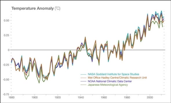 FACT: As a result of increases in atmospheric carbon dioxide, global surface temperatures have increased by about one degree centigrade since 1880. The 10 warmest years ever recorded—with the exception of 1998—have occurred since 2000. 2014 was the warmest year ever recorded.