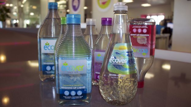For this reason Belgium-based Ecover, which makes household cleaning products, made the design choice to use only white or transparent plastic, so that its bottles can be recycled over and over again.