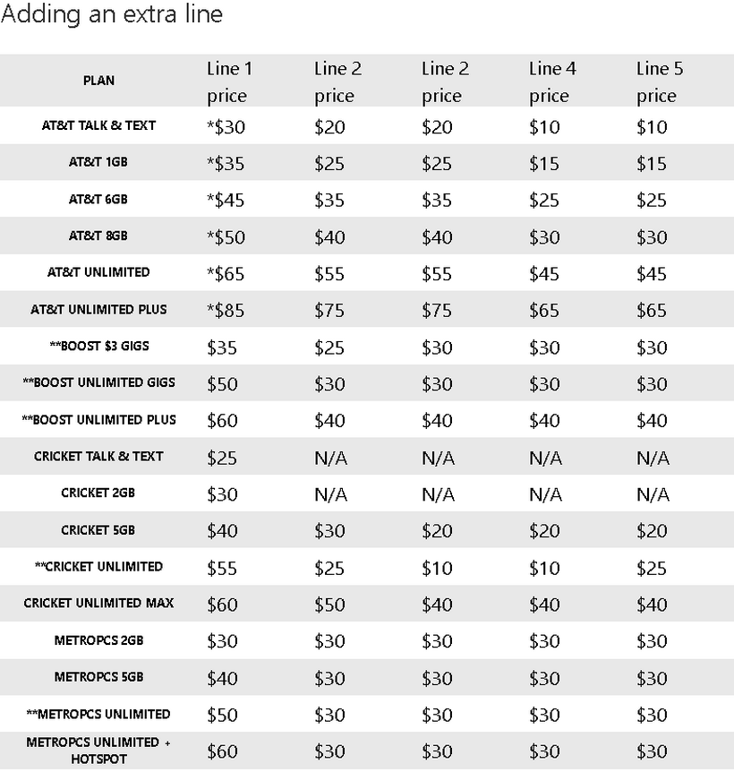 Most prepaid plans will let you add up to five additional lines of service to a single account, typically with the extra lines costing less the more you add. Extra lines are ideal for families that want multiple phones without getting several bills.