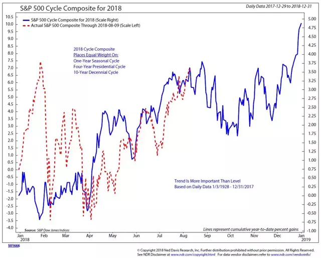 3. Stock Market Seasonality Pattern: Another chart with short-term bearish implications is this cycle composite chart from Ed Clissold. It shows the composite cycle/seasonality signal across 3 different time frames, and so far this year, the market has been tracking somewhat in line. But the key point is the next couple of months typically bring challenging times for the S&P 500. So that's another short-term bearish warning sign.