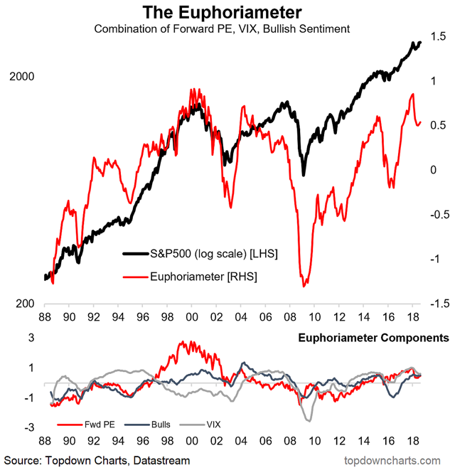 Bottom line: The Euphoriameter likewise shows investor sentiment still bullish, but toned down a notch.