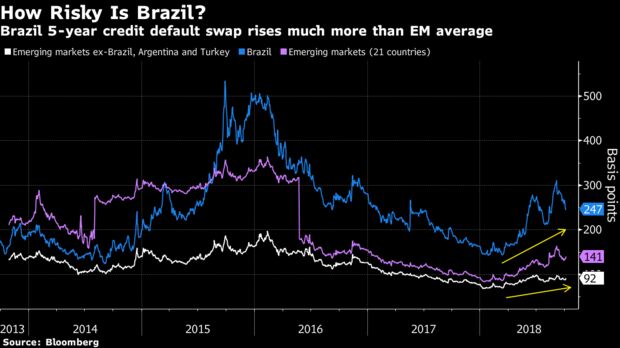 “The political landscape remains critically important in influencing Brazilian asset prices,” said Angus Bell, a portfolio manager at Goldman Sachs Asset Management in London who is avoiding Brazil’s sovereign dollar bonds. “The key factor is the ability for the country to adjust its fiscal profile onto a more sustainable trajectory.”