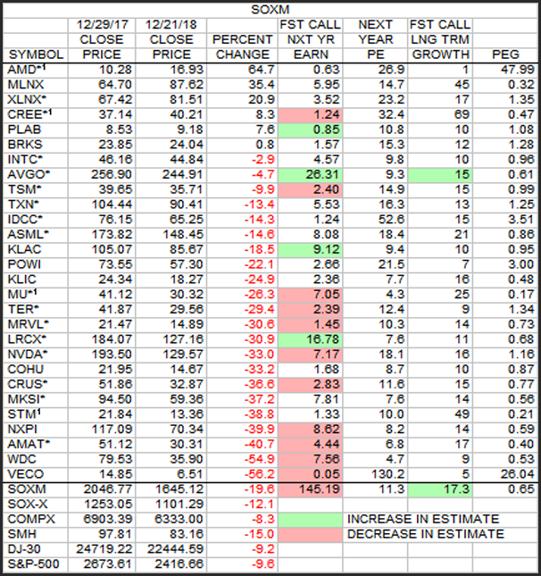 This is the weekly update of the performance of the SOXM stocks and major indices since the 1st of the year to Friday's close in actual and percent terms in table and chart formats.