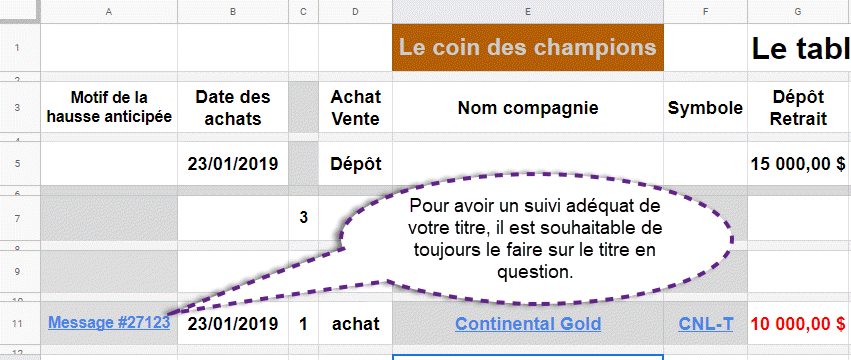 Pour avoir un suivi adéquat de votre titre, il est souhaitable de toujours le faire sur le titre en question.