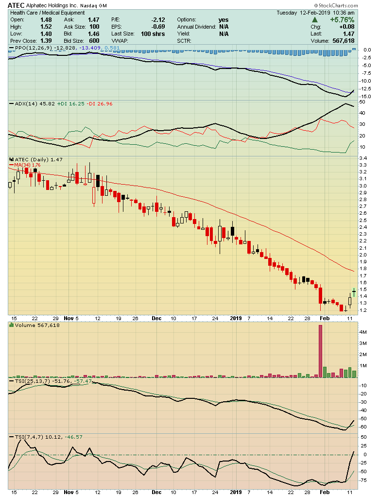 Sold ATEC this morning at 1.49. Would have liked the ADX higher before the pincher started to spread..